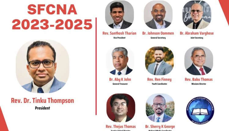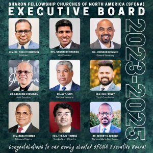 ഒക്കലഹോമ: ഒക്കലഹോമ സിറ്റിയിൽ വച്ച് നടത്തപ്പെട്ട പതിനെട്ടാമത് ശാരോൻ ഫെല്ലോഷിപ്പ് ഫാമിലി കോൺഫറൻസിൽ 2023 – 2025 ലേക്കുള്ള ഭരണ സമിതി നിലവിൽ വന്നു. റവ ഡോ റ്റിങ്കു തോംപ്സൺ (Minnesota) പ്രസിഡന്റ്, മിന്നസോട്ടാ പെന്തെക്കോസ്റ്റൽ അസംബ്ലിയുടെ സീനിയർ പാസ്റ്ററായി സേവനം അനുഷ്ഠിക്കുന്നു. വൈസ് പ്രസിഡന്റായി തിരഞ്ഞെടുക്കപ്പെട്ട റവ സന്തോഷ് തര്യൻ, NY Albany ശാരോൻ ഫെല്ലോഷിപ്പ് സഭയുടെ സീനിയർ പാസ്റ്ററാണ്.