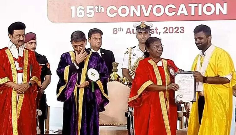 മദ്രാസ് യൂണിവേഴ്സിറ്റി സ്കൂൾ ഓഫ് ലൈഫ് സയൻസ് Msc സുവോളജിയിൽ ഒന്നാം റാങ്ക് നേടിയ കെവിൻ ഫിലിപ്പ് സാബുവിനെ മദ്രാസ് അണ്ണാ യൂണിവേഴ്സിറ്റിയിൽ നടന്ന പ്രൗഢഗംമ്പിരമായ ചടങ്ങിൽ ഇന്ത്യൻ രാഷ്ട്രപതി ദ്രൗപതി മുർമു ആദരിച്ചു. തമിഴ്നാട് ഗവർണർ ആർ എൻ രവി മുഖ്യമന്ത്രി എം കെ സ്റ്റാൻലിൻ, വിദ്യാഭ്യാസ മന്ത്രി ഡോ. കെ പൊൻമുടി തുടങ്ങിയവർ സന്നിഹിതരായിരുന്നു.