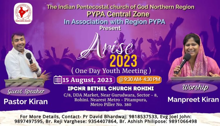 ഐ.പി.സി നോർത്തേൺ റീജിയൺ സെൻട്രൽ സോൺ പി.വൈ.പി.എ ഏകദിന യൂത്ത് ക്യാമ്പ് “എറൈസ് 2023”