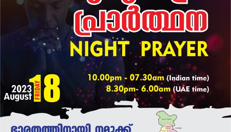 പ്രാർത്ഥനാസംഗമം ഒരുക്കുന്ന ‘മുഴുരാത്രി പ്രാർത്ഥന’ ഓഗസ്റ്റ് 18, ഇന്ന്
