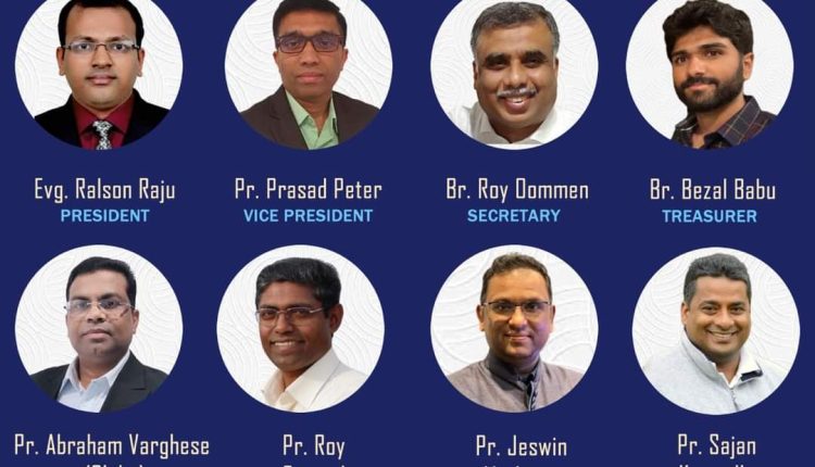 Evg Ralson Raju (President), Pastor Prasad Peter (Vice President), Bro Roy Oommen (Secretary), Bro. Bezal Babu (Treasurer).