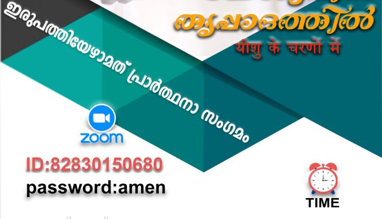 16ന് ഇന്ത്യൻ സമയം രാത്രി 7.30-ന് ഓൺലൈനിൽ നടക്കും. പാസ്റ്റർ ജോബി ദേവസ്യ,മസ്കറ്റ് (Holy Spirit Revival Church)