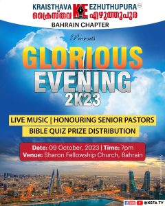 ക്രൈസ്തവ എഴുത്തുപുര ബഹ്റൈൻ ചാപ്റ്റർ: ‘ഗ്ലോറിയസ് ഇവനിങ് 2023’ ഒക്ടോബർ 9 ന് ബഹറിനിൽ