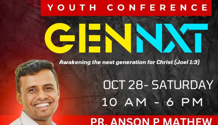 കിച്ച്നെർ: കാനഡ മൗണ്ട് കാർമൽ യൂത്ത് മിനിസ്ട്രി (MCYM) ഒരുക്കുന്ന ഏകദിന യൂത്ത് കോൺഫറൻസ്, GenNxt Awakening the Next Generation for Christ, ഒക്ടോബർ 28-ന്, 10 AM മുതൽ 6 PM വരെ കാനഡ കിറ്റ്ച്ച്നെർ, കൺട്രി ഹിൽസ് ചർച്ചിൽ വെച്ച് നടക്കും.