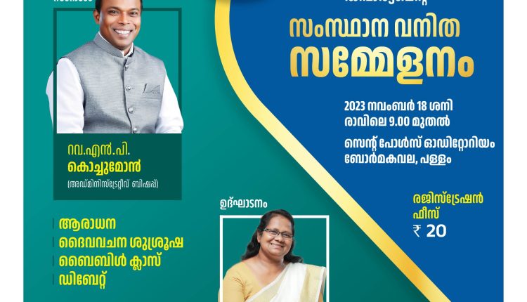 പാക്കിൽ: ചർച്ച് ഓഫ് ഗോഡ് ഇൻ ഇന്ത്യ കേരള റീജിയൻ വനിത വിഭാഗം ലേഡീസ് ഓക്സിലറി (എൽ. എ.) സംസ്ഥാന സമ്മേളനം 2023 നവംബർ 18 ശനിയാഴ്ച പള്ളം ബോർമ്മ കവല സെന്റ് പോൾസ് ഓഡിറ്റോറിയത്തിൽ വെച്ച് നടക്കും. സംസ്ഥാന എൽ എ പ്രസിഡന്റ് സിസ്റ്റർ. ലിസ കൊച്ചുമോൻ സമ്മേളനം ഉദ്ഘാടനം ചെയ്യും. സിസ്റ്റർ. സൂസമ്മ സണ്ണി അദ്ധ്യക്ഷത വഹിയ്ക്കുന്ന സമ്മേളനത്തിൽ ദൈവ സഭ അഡ്മിനിസ്ട്രേറ്റീവ് ബിഷപ്പ് പാസ്റ്റർ എൻ.പി.കൊച്ചുമോൻ കുമരകം സന്ദേശം നൽകും.പ്രശസ്ത സുവിശേഷകൻ പാ. അനിൽ കൊടിത്തോട്ടം ബൈബിൾ ക്ലാസ്സ് നയിക്കും.