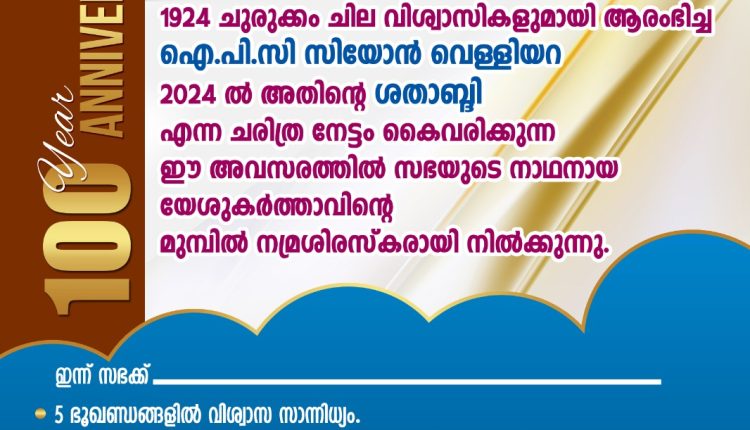 ഐ.പി.സി സിയോൻ വെള്ളിയറ: ശതാബ്ദി വർഷത്തോടനുബന്ധിച്ച് വിവിധ പദ്ധതികൾ