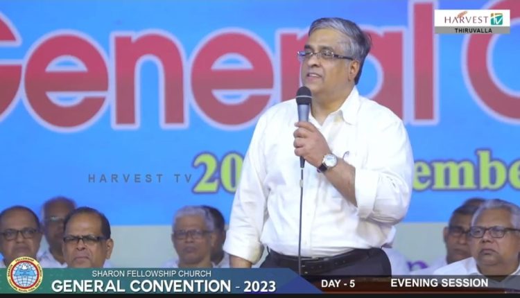 അദ്ദേഹം കൂട്ടിച്ചേർത്തു. ശാരോൻ ഫെല്ലോഷിപ്പ് ചർച്ച് ജനറൽ കൺവൻഷന്റെ അഞ്ചാം ദിവസം സന്ദേശം നൽകുകയായിരുന്നു അദ്ദേഹം. പാസ്റ്റർ മാത്യു വർഗീസും സന്ദേശം നൽകി. പാസ്റ്റർ തോമസ് യോഹന്നാൻ അധ്യക്ഷനായിരുന്നു. പാസ്റ്റർ എബ്രഹാം മാർക്കൊസ്, ബ്രദർ ജോൺസൻ സി, പാസ്റ്റർ എ വി ജോസ് തുടങ്ങിയവർ പ്രാർത്ഥനയ്ക്ക് നേതൃത്വം നൽകി. ശാരോൻ ക്വയർ ഗാനങ്ങൾ ആലപിച്ചു.