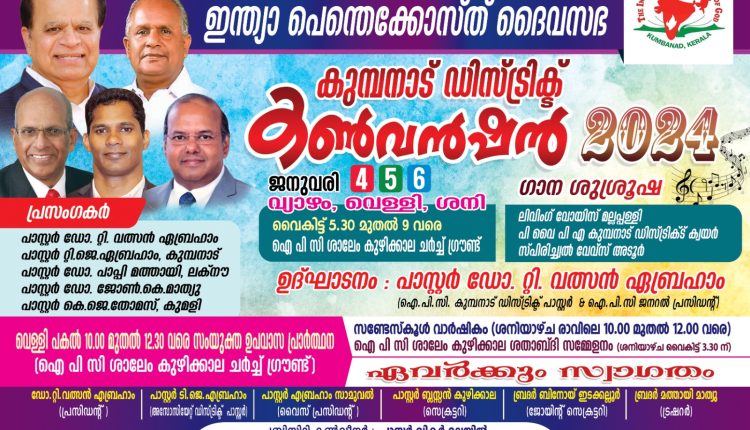 ഐപിസി കുമ്പനാട് ഡിസ്ട്രിക്ട് കൺവെൻഷൻ ജനുവരി 4 മുതൽ 6 വരെ