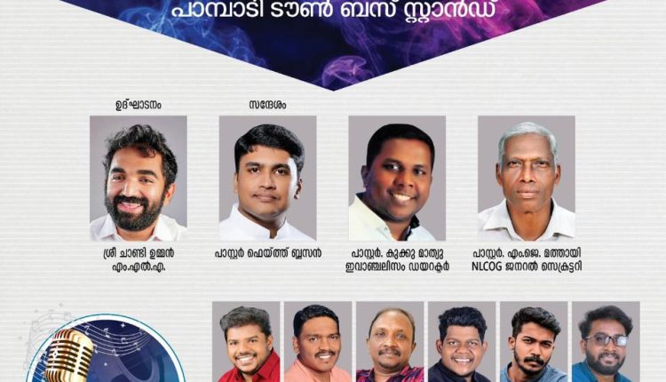 പാമ്പാടി : ന്യൂ ലൈഫ് ചർച്ച് ഓഫ് ഗോഡ് ദൈവസഭയുടെ ഇവഞ്ചിലിസം ഡിപ്പാർട്ട്മെന്റിന്റെ നേതൃത്വത്തിൽ 2023 ഡിസംബർ മാസം 28ാം തീയതി സംഗീത വിരുന്നും ലഹരിവിരുദ്ധ സന്ദേശവും പാമ്പാടി ബസ് സ്റ്റാൻഡിൽ വെച്ച് വൈകുന്നേരം 5:30 മുതൽ 8:30 വരെ നടത്തപ്പെടുന്നു. ശ്രീ. ചാണ്ടി ഉമ്മൻ(എം എൽ എ) ഉത്ഘാടനം ചെയ്യുന്ന സമ്മേളനത്തിൽ പാസ്റ്റർ ഫെയ്ത് ബ്ലെസ്സൺ മുഖ്യസന്ദേശവും നൽകുന്നു. ന്യൂ ലൈഫ് മെലഡീസ് ഗാനശുശ്രുഷകൾക്ക് നേതൃതം നൽകുകയും അനുഗ്രഹിതരായ മറ്റു ഗായകർ കുടി ഗാനശുശ്രുഷയിൽ പങ്കെടുക്കുന്നു. ഇവഞ്ചിലിസം ഡയറക്ടർ പാസ്റ്റർ കുക്കു മാത്യു ഈ സമ്മേളനത്തിന് നേതൃത്വം നൽകും