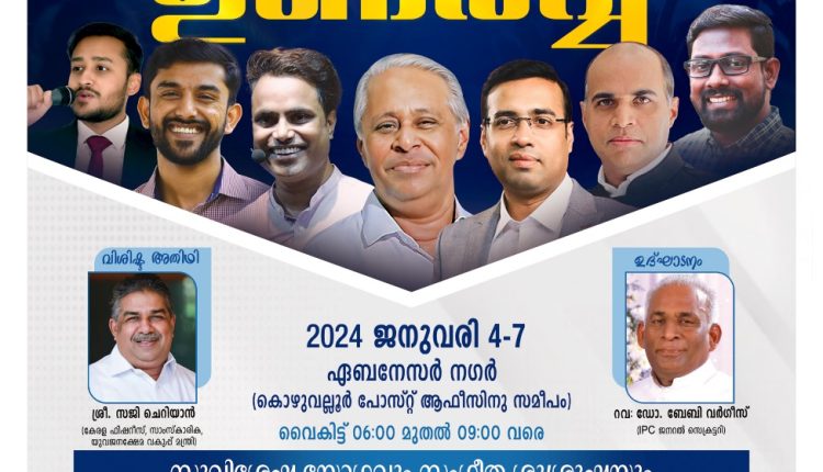ഐപിസി മാവേലിക്കര ഈസ്റ്റ് ഡിസ്ട്രിക്റ്റിന്റെയും കൊഴുവല്ലൂർ ഏബനേസർ സഭയുടെയും സംയുക്ത ആഭിമുഖ്യത്തിൽ ഡിസ്ട്രിക്ട് കൺവൻഷൻ ‘ഉണർവ്വ് 2024’