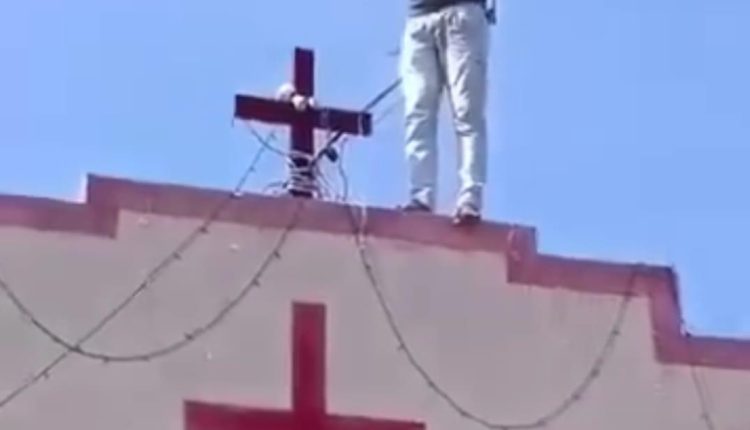 മധ്യപ്രദേശിൽ ക്രിസ്ത്യൻ പള്ളിക്ക് മുകളിൽ കാവിക്കൊടി കെട്ടി