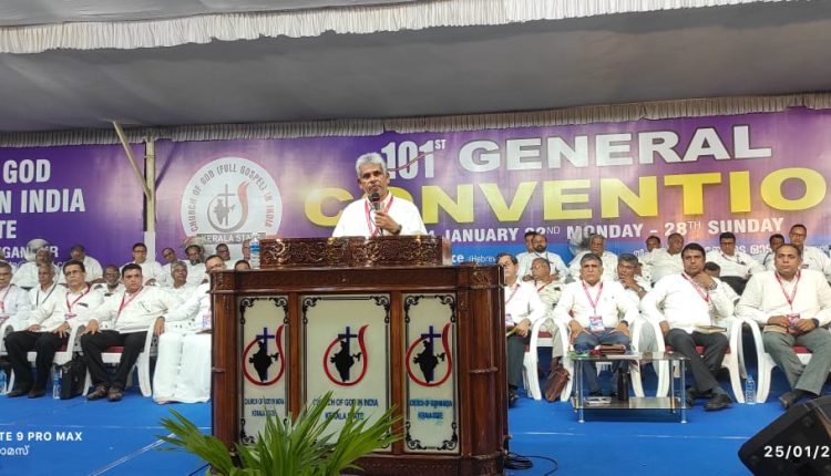 തിരുവല്ല: മനുഷ്യ ജീവിതത്തിന് ഒരു ലക്ഷ്യം ഉണ്ട് പ്രസ്തുത ലക്ഷ്യത്തിലേക്കുള്ള പ്രയാണത്തിലാണ് ഏവരും. ചിലര് ലക്ഷ്യം മനസ്സിലാക്കി യാത്ര ചെയ്യുന്നു, ചിലര് അതിനെ കാര്യമാക്കാതെ അലക്ഷ്യമായി യാത്ര ചെയ്യുന്നു. ജീവിത വിജയം ഉണ്ടാകണമെങ്കില് നമ്മുടെ യാത്രയുടെ ലക്ഷ്യത്തെക്കുറിച്ച് കൃത്യമായ ധാരണ ഉണ്ടായിരിക്കണമെന്ന് സെന്ട്രല് വെസ്റ്റ് റീജിയിന് അഡ്മിനിസ്ട്രേറ്റിവ് ബിഷപ്പ് പാസ്റ്റര് ബെനിസണ് മത്തായി പറഞ്ഞു. ചര്ച്ച് ഓഫ് ഗോഡ് കേരളാ സ്റ്റേറ്റ് 101-ാമത് ജനറല് കണ്വന്ഷന്റെ നാലാം ദിനം പൊതുയോഗത്തെ അഭിസംബോധന ചെയ്ത് സംസ്സാരിക്കുകയായിരുന്നു അദ്ദേഹം. ജീവിതത്തിന്റെ ലക്ഷ്യ ബോധം നഷ്ടപ്പെടുന്നവര്ക്ക് മാര്ഗ്ഗദര്ശിയാണ് ക്രിസ്തുമാര്ഗ്ഗമെന്നും അദ്ദേഹം കൂട്ടിച്ചേര്ത്തു.