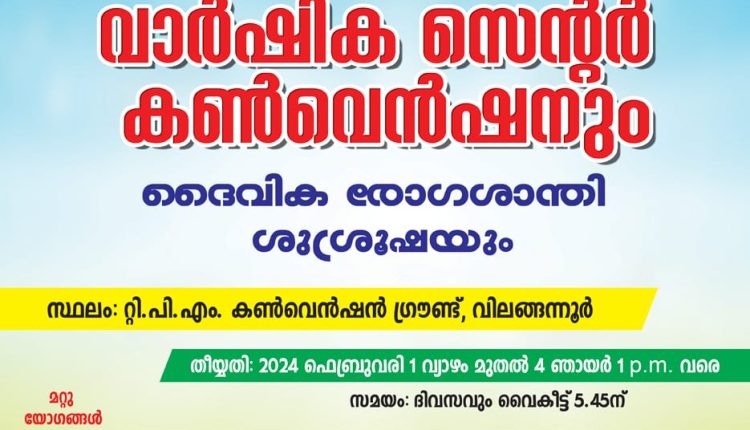 റ്റി.പി.എം തൃശ്ശൂർ സെന്റർ കൺവൻഷൻ നാളെ മുതൽ വിലങ്ങന്നൂരിൽ