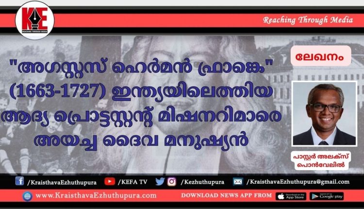 “അഗസ്റ്റസ് ഹെർമൻ ഫ്രാങ്കെ” (1663-1727) ഇന്ത്യയിലെത്തിയ ആദ്യ പ്രൊട്ടസ്റ്റന്റ് മിഷനറിമാരെ അയച്ച ദൈവ മനുഷ്യൻ