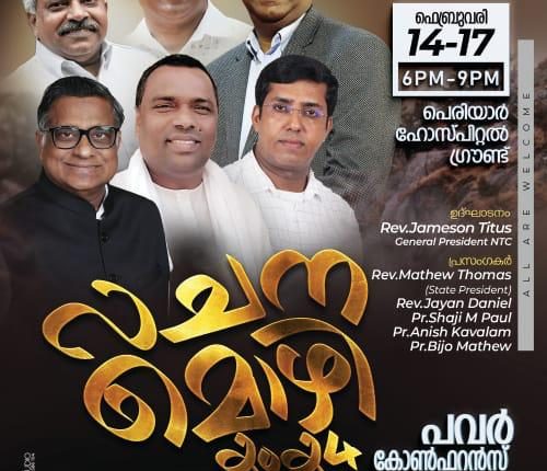 വചനമൊഴി 2024 ന്യൂ ടെസ്റ്റമെന്റ് ചർച്ച് ഓഫ് ഇന്ത്യ കുമളിദൈവസഭയുടെ ആഭിമുഖ്യത്തിൽ സുവിശേഷയോഗവും സംഗീത വിരുന്നും പെരിയാർ ഹോസ്പിറ്റൽ അങ്കണത്തിൽ 2024 ഫെബ്രുവരി 14 മുതൽ 17 വരെ ദൈവസഭ ജനറൽ പ്രസിഡന്റ് Rev.ജയിംസൻ ടൈറ്റസ് ഉദ്ഘാടനം നിർവ്വഹിക്കും. Rev.Dr. മാത്യൂ തോമസ്, Rev.ജയൻ ഡാനിയേൽ, പാസ്റ്റർ അനീഷ് കാവാലം,പാസ്റ്റർ ഷാജി എം.പോൾ,പാസ്റ്റർ ബിജോ മാത്യു എന്നീ ദൈവദാസൻമാർ വിവിധ യോഗങ്ങളിൽ ദൈവവചനം പ്രസംഗിക്കും.