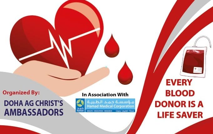 ദോഹ: സൗജന്യ രക്ത ദാന ക്യാമ്പ് നാളെ (23.02.2024) മെസേയ്മീറിൽ ഉള്ള റിലീജിയസ് കോംപ്ലക്സ്സിലെ ഐഡിസിസി ക്യാമ്പസിൽ വച്ച് ദോഹ അസ്സെംബ്ലിസ് ഓഫ് ഗോഡ് സഭയുടെ യുവാക്കളുടെ സംഘടനയായ ക്രൈസ്റ്റ് അംബാസ്സെഡേഴ്സിന്റെ നേതൃത്വത്തിൽ നടത്തപ്പെടുന്നു.