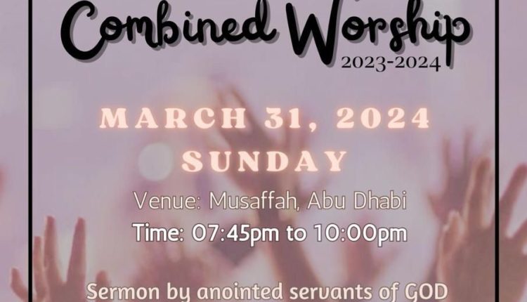 അബുദാബി : അബുദാബി പെന്തക്കോസ്തൽ ചർച്ചസ് കോൺഗ്രിഗേഷൻ 2023 – 24 ( APCCON ) പ്രവർത്തന വർഷത്തെ അടുത്ത സംയുക്ത ആരാധന മാർച്ച് 31 ഞായറാഴ്ച വൈകിട്ട് 07:45 മുതൽ 10:00 മണി വരെ അബുദാബി മുസഫയിൽ വച്ച് നടത്തപ്പെടും. പ്രസ്തുത മീറ്റിംഗിൽ അപ്കോൺ ക്വയർ ഗാനങ്ങൾ ആലപിക്കും. അനുഗ്രഹീത ദൈവദാസന്മാർ ദൈവവചനത്തിൽ നിന്നും ശുശ്രൂഷിക്കും. മീറ്റിങ്ങിന് അപ്കോൺ പ്രസിഡന്റ് Pr. എബി എം വർഗീസ്, വൈസ് പ്രസിഡന്റ് Pr. സജി വർഗീസ്, സെക്രട്ടറി Bro. ജോഷ്വാ ജോർജ് മാത്യൂ തുടങ്ങിയവർ നേതൃത്വം നൽകും.