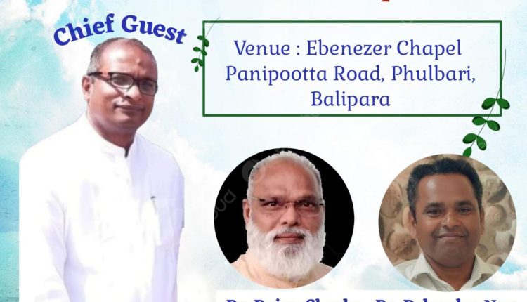 ബാലിപാറ / (ആസാം): ഐ പി സി ബോഡോലാൻഡ് റീജിയന്റെ ആഭിമുഖ്യത്തിൽ പാസ്റ്റഴ്സ് കോൺഫറൻസും സംയുക്ത ആരാധനയും ഏപ്രിൽ 6, 7 തീയതികളിൽ ബാലിപാറ ഫുൾബാരി പാനിപോട്ട റോഡിൽ എബനേസർ ചാപ്പലിൽ നടക്കും.