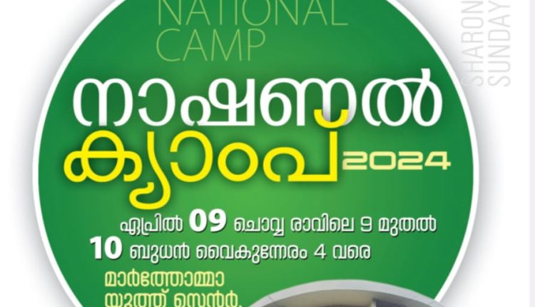 തിരുവല്ല: ശാരോൻ ഫെലോഷിപ്പ് ചർച്ച് സൺഡേ സ്കൂൾ അസോസിയേഷൻ അധ്യാപകർക്കും ജൂണിയർ വിദ്യാർഥികൾക്കുമായി സംഘടിപ്പിക്കുന്ന നാഷണൽ ക്യാംപ് ഏപ്രിൽ 9,10 തീയതികളിൽ അടൂർ മാർത്തോമ്മാ യൂത്ത് സെൻ്ററിൽ വെച്ചു നടക്കും.