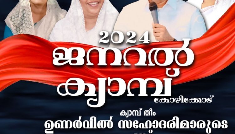 കോഴിക്കോട്: ക്രിസ്ത്യൻ ലേഡീസ് ഫെല്ലോഷിപ്പിന്റെ സംസ്ഥാന വനിതാ ക്യാമ്പ് 2024ഏപ്രിൽ 2,3,4തീയതികളിൽ കോഴിക്കോട് കെ പി സി ഫിൽദെൽഫിയ ഹാളിൽ വച്ച് നടത്തപ്പെടുന്നു. അനുഗ്രഹീത ദൈവദാസി ദാസന്മാർ ക്ലാസുകൾ നയിക്കുന്നു.പാസ്റ്റർ സിജി ചാക്കോ, സിസ്റ്റർ റീജ ബിജു തുടങ്ങിയവർ പങ്കെടുക്കുന്നു.ക്യാമ്പ് തീം “ഉണർവിൽ സഹോദരിമാരുടെ പങ്ക് “സിസ്റ്റർ ഷീലാ ദാസ്, ബ്ലസി ബിജു തുടങ്ങിയവർ നേതൃത്വം നൽകുന്നു.