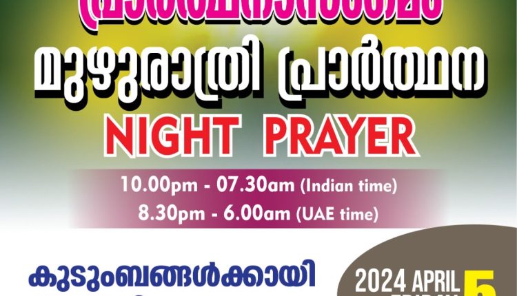 പ്രാർത്ഥനാസംഗമം ഒരുക്കുന്ന ‘മുഴുരാത്രി പ്രാർത്ഥന’ ഏപ്രിൽ 5, ഇന്ന് രാത്രി
