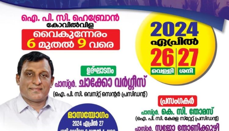 ഐ.പി സി തിരുവനന്തപുരം വെസ്റ്റ് സെൻ്ററിൻ്റെ ആഭിമുഖ്യത്തിൽ സുവിശേഷ മഹാ യോഗവും പുത്രികാ സംഘടനകളുടെ വാർഷിക സമ്മേളനവും