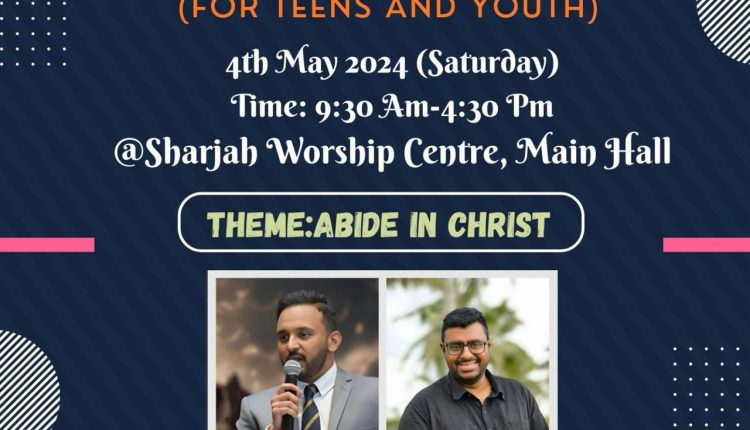 ഷാർജ: ഐപിസി വർഷിപ്പ് സെന്റർ സൺഡേ സ്കൂൾ ഏകദിന ക്യാമ്പ് മെയ് 4, ശനിയാഴ്ച രാവിലെ 9:30 മുതൽ വൈകിട്ട് 4:30 വരെ ഷാർജ വർഷിപ്പ് സെന്റർ മെയിൻ ഹാളിൽ നടക്കും.കൗമാരക്കാർക്കും യുവജനങ്ങൾക്കും ഉള്ള ഏക ദിന റിട്രീറ്റിന്റെ തീം “Abide in Christ” എന്നതാണ്. റവ. ഡോ.വിൽസൺ ജോസഫ് (പ്രസിഡന്റ്, ഐപിസി യുഎഇ റീജിയൻ) ക്യാമ്പ് ഉത്ഘാടനം ചെയ്യും.പാസ്റ്റർ ജോ വിൽസൺ (കാനഡ) പാസ്റ്റർ സുജിത്. എം. സുനിൽ (നാഗപൂർ) എന്നിവർ ക്ലാസുകൾ നയിക്കും. പാട്ട്, ആരാധന, ഗെയിംസ്, പപ്പറ്റ് ഷോ കൂടാതെ കുട്ടികൾക്ക് പ്രത്യേകം കൌൺസിലിംഗ് എന്നിവ ഉണ്ടായിരിക്കുമെന്ന് സിസ്റ്റർ ജീൻ ഷാജി (പ്രിൻസിപ്പൽ)അറിയിച്ചു.