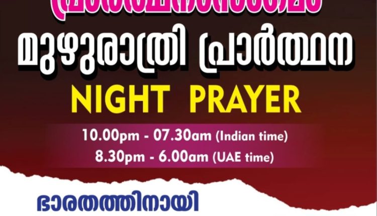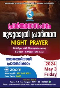 പ്രാർത്ഥനാസംഗമം ഒരുക്കുന്ന ‘മുഴുരാത്രി പ്രാർത്ഥന’ മെയ് 3, ഇന്ന് രാത്രി