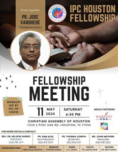 ഐപിസി ഹൂസ്റ്റൺ ഫെലോഷിപ്പിന്റെ സമ്മേളനം മെയ് 11ന് ശനിയാഴ്ച