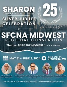 ചിക്കാഗോയിൽ ശാരോൻ ഫെല്ലോഷിപ്പ് ചർച്ചിന്റെ പ്രവർത്തനം ആരംഭിച്ചിട്ട് 25 വർഷം പൂർത്തിയാക്കുന്നതിന്റെ ഭാഗമായി പ്രത്യേക സ്തോത്ര ശുശ്രൂഷ സമ്മേളനം ജൂൺ 1 ശനിയാഴ്ച നടക്കുന്നതാണ്. ഈ പ്രത്യേക സമ്മേളനത്തിൽ കെനോഷാ സിറ്റി മേയർ ഡേവിഡ് ബോഗ്ഡോള ഉൾപ്പെടെയുള്ള വിശിഷ്ട അതിഥികൾ പങ്കെടുക്കും. സിൽവർ ജൂബിലി തീം സോങ് ക്വയർ അവതരിപ്പിക്കും. സഭയുടെ ചരിത്രം അടങ്ങിയ സുവനീർ ഈ സമ്മേളനത്തിൽ പ്രകാശനം ചെയ്യും. റവ. ജിജു ഉമ്മൻ (പ്രസിഡന്റ് ), ഷെറി കെ. ജോർജ് (സെക്രട്ടറി), ജെയിംസ് ഉമ്മൻ (പ്രോഗ്രാം കോർഡിനേറ്റർ) എന്നിവരുടെയും ചർച്ച് ബോർഡിന്റെയും നേതൃത്വത്തിൽ വിവിധ കമ്മിറ്റികൾ സമ്മേളനത്തിന്റെ സുഗമമായ നടത്തിപ്പിനായി പ്രവർത്തിച്ചു വരുന്നു.