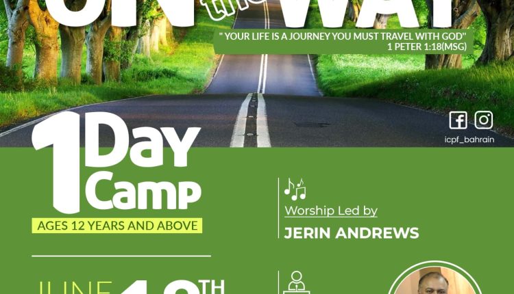 മനാമ: ഐ.സി.പി.ഫ് ബഹറിൻ ഒരുക്കുന്ന ഏകദിന ക്യാമ്പ് ജൂൺ 18 തിയതി രാവിലെ 08:30 മുതൽ വൈകിട്ടു 05 :30 വരെ ഷാരോൺ ഫെല്ലോഷിപ്പ് ഹാളിൽ വെച്ചു നടത്തപ്പെടുന്നു പ്രസ്തുത മീറ്റിംഗിൽ ബ്രദർ ഡെന്നി സാം ക്ലാസ്സുകൾക്ക് നേത്ര്ത്വം നൽകും ബ്രദർ ജെറിൻ ആൻഡ്രൂസ് ആരാധനക്ക് നേത്ര്ത്വം നൽകും