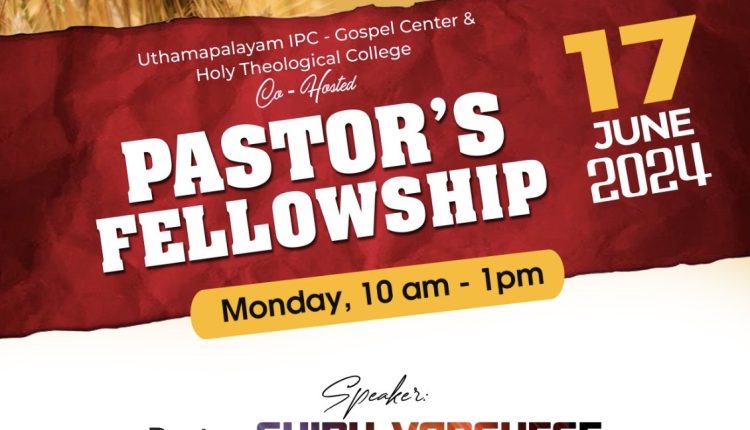 കമ്പം: ഐപിസി ഉത്തമപാളയം (കമ്പം, തമിഴ്നാട്) സെന്ററും ഹോളി തിയോളജിക്കൽ കോളേജും (തൃശൂർ) സംയുക്തമായി നടത്തുന്ന പാസ്റ്റർസ് ഫെല്ലോഷിപ്പ് ജൂൺ 17 ന് (തിങ്കൾ, ജൂൺ 17, 2024) കമ്പം, ഉത്തമപാളയം ഐപിസി ഗോസ്പൽ സെന്ററിൽ വെച്ച് രാവിലെ 10 മുതൽ ഉച്ചയ്ക്ക് 1 മണി വരെ നടത്തപ്പെടും. പാസ്റ്റർ ഷിബു വർഗീസ് മുഖ്യ സന്ദേശം നൽകും. ഉത്തമപാളയം സെന്റർ ശുശ്രൂഷകൻ പാസ്റ്റർ അജു വർഗീസ് ശുശ്രൂഷകൾക്ക് നേതൃത്വം നൽകും. സെന്ററിലെ ദൈവദാസൻമാർ ചുറ്റുമുള്ള സഭകളിലെ ദൈവദാസന്മാർ പങ്കെടുക്കും. സെന്റർ ക്വയർ ഗാനശുശ്രൂഷയ്ക്ക് നേതൃത്വം നൽകും.