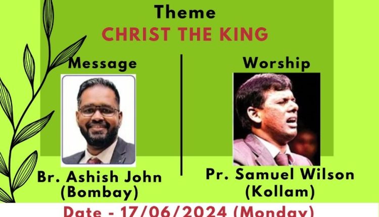 പാലക്കാട്: ഐപിസി പാലക്കാട് സോണൽ പി.വൈ.പി.എ ഏകദിന കോൺഫറൻസ് ജൂൺ 17 ന് (തിങ്കൾ) ഐപിസി ലൈറ്റ് ഹൗസ് ചർച്ചിൽ വെച്ച് രാവിലെ 9 മണി മുതൽ വൈകുന്നേരം 4 വരെ നടത്തപ്പെടും. ബ്രദർ ആശിഷ് ജോൺ (മുംബൈ) മുഖ്യ സന്ദേശം നൽകും. പാ. വിൽസൺ സാമുവേൽ സംഗീത ശുശ്രൂഷക്ക് നേതൃത്വം നൽകും. ‘ക്രിസ്തു രാജാവ്’ എന്നതാണ് കോൺഫറൻസ് തീം.