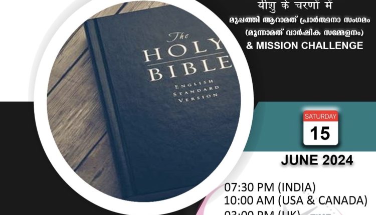 യേശുവിൻ തൃപ്പാദത്തിൽ വാർഷിക സമ്മേളനവും മിഷൻ ചലഞ്ചും ജൂൺ 15 ശനിയാഴ്ച