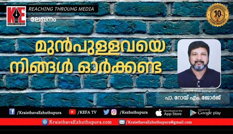 ലേഖനം: മുൻപുള്ളവയെ നിങ്ങൾ ഓർക്കണ്ട | പാ. റോയ് എം. ജോർജ്ജ്