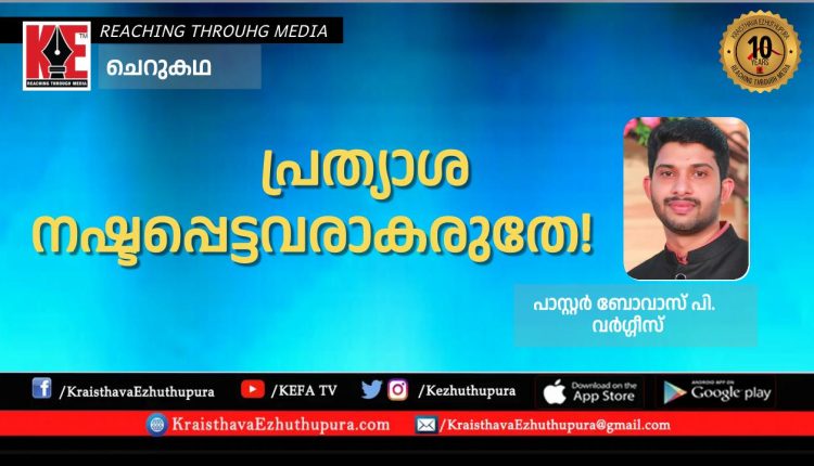 ചെറു ചിന്ത: പ്രത്യാശ നഷ്ടപ്പെട്ടവരാകരുതേ! | പാസ്റ്റർ ബോവാസ് പി. വർഗ്ഗീസ്