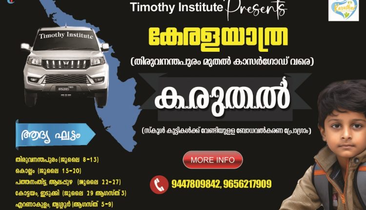 കുട്ടികൾക്ക് ഇടയിലുള്ള സാമൂഹ്യ തിന്മകൾക്കെതിരെ ബോധവത്കരണവുമായി തിമഥി ഇൻസ്റ്റിറ്റ്യൂട്ട് കേരള യാത്രയ്ക്ക് തുടക്കമായി