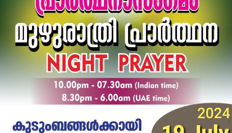 പ്രാർത്ഥനാസംഗമം ഒരുക്കുന്ന ‘മുഴുരാത്രി പ്രാർത്ഥന’ ജൂലൈ 19, ഇന്ന് രാത്രി