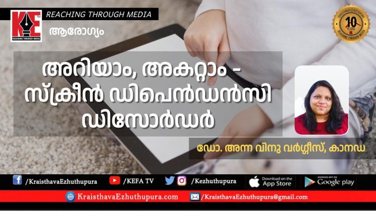ആരോഗ്യം: അറിയാം, അകറ്റാം – സ്ക്രീൻ ഡിപെൻഡൻസി ഡിസോർഡർ | ഡോ. അന്ന വിനു വർഗ്ഗീസ്, കാനഡ.