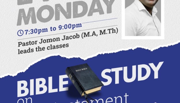 ബാംഗ്ലൂർ: എക്ക്ളീഷിയ ഐപിസി സഭയുടെ ആഭിമുഖ്യത്തിൽ എല്ലാ തിങ്കളാഴ്ചകളിലും വൈകിട്ട് 7.30 pm മുതൽ 9 pm വരെ ബൈബിൾ ക്ലാസ് നടക്കുന്നു. ഗൂഗിൾ മീറ്റ് വഴി നടക്കുന്ന ഈ ബൈബിൾ സ്റ്റഡിയിൽ “പുതിയ നിയമപ്രവേശിക” എന്ന വിഷയം പാസ്റ്റർ ജോമോൻ ജേക്കബ്
