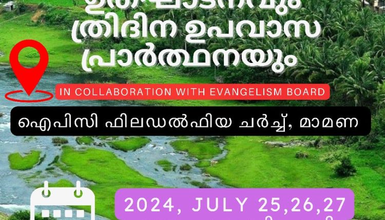 പാലക്കാട്: ഐപിസി പാലക്കാട് നോർത്ത് സെൻ്റർ 2024-’25 വർഷത്തെ പ്രവർത്തനങ്ങളുടെ ഉത്ഘാടനവും ത്രിദിന ഉപവാസ പ്രാർത്ഥനയും സെൻ്റർ ഇവാൻഞ്ചലിസം ബോർഡുമായി ചേർന്ന് അട്ടപ്പാടി മാമണ ഫിലഡൽഫിയ സഭയിൽ വെച്ച് ഈ മാസം 25,26,27 (വ്യാഴം, വെള്ളി, ശനി) ദിവസങ്ങളിൽ നടത്തപ്പെടും. സെൻ്റർ മിനിസ്റ്റർ പാ. എം. വി. മത്തായി ഉത്ഘാടനം നിർവഹിക്കും. സെൻ്ററിലെ ദൈവദാസൻമാർ വിവിധ സെഷനുകളിൽ ലീഡ് ചെയ്യുകയും ദൈവവചനം ശുശ്രൂഷിക്കുകയും ചെയ്യും.