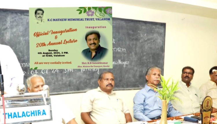 കെ.സി.മാത്യുവിന്റെ 20-ാമത് അനുസ്മരണ സമ്മേളനവും മെമ്മോറിയൽ ട്രസ്റ്റിന്റെ ഉദ്ഘാടനവും വാർഷിക പ്രഭാഷണവും