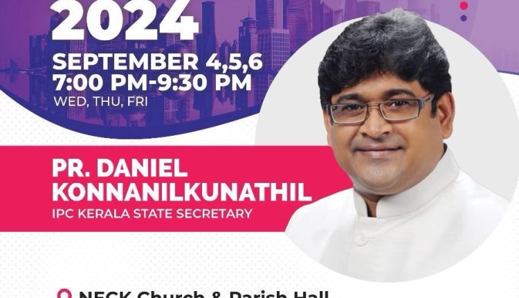 കുവൈറ്റ് സിറ്റി: ഐപിസി കുവൈറ്റ് റീജിയൻ കൺവൻഷൻ സെപ്റ്റംബർ 4 മുതൽ 6 വരെ എൻ.ഇ.സി.കെ ചർച്ച് & പാരിഷ് ഹാളിൽ വെച്ച് നടക്കും. ഐപിസി കേരള സ്റ്റേറ്റ് സെക്രട്ടറി പാസ്റ്റർ ദാനിയേൽ കൊന്നനിൽക്കുന്നതിൽ വചനശുശ്രുഷ നിർവഹിക്കും. ഐപിസി കുവൈറ്റ് റീജിയൻ ക്വയർ ഗാനശുശ്രൂഷയ്ക്കു നേതൃത്വം നൽകും.