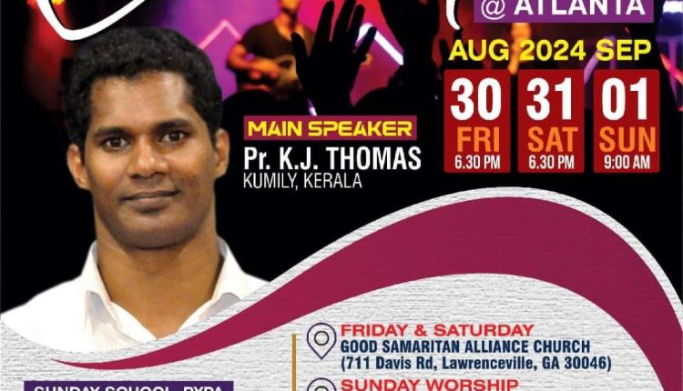 ഐ.പി.സി സൗത്ത് ഈസ്റ്റ് റീജിയൻ വാർഷിക കൺവൻഷൻ 30 മുതൽ അറ്റ്ലാന്റായിൽ; പാസ്റ്റർ കെ.ജെ. തോമസ് മുഖ്യ പ്രാസംഗികൻ