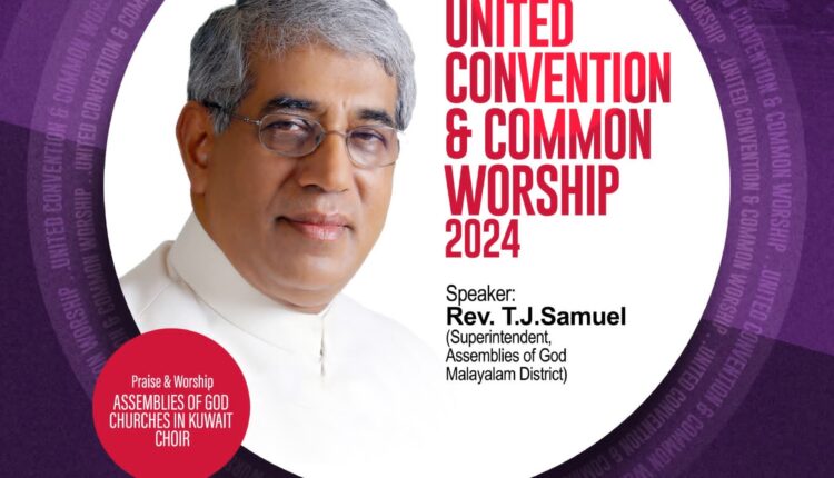 കുവൈറ്റ് സിറ്റി : കുവൈറ്റിലെ അസംബ്ലിസ് ഓഫ് ഗോഡ് സഭകളുടെ സംയുക്ത കൺവെൻഷനും, സഭായോഗവും 2024 സെപ്തംബർ 11, 13 തീയതികളിൽ കുവൈറ്റ് സിറ്റിയിലുള്ള നാഷണൽ ഇവാൻജെലിക്കൽ ചർച്ച് കോമ്പൗണ്ടിലെ (എൻ ഇ സി കെ) ചർച്ച് & പാരിഷ് ഹാളിൽ വച്ച് വൈകിട്ട് 7 മണി മുതൽ 9 മണി വരെ നടക്കും.