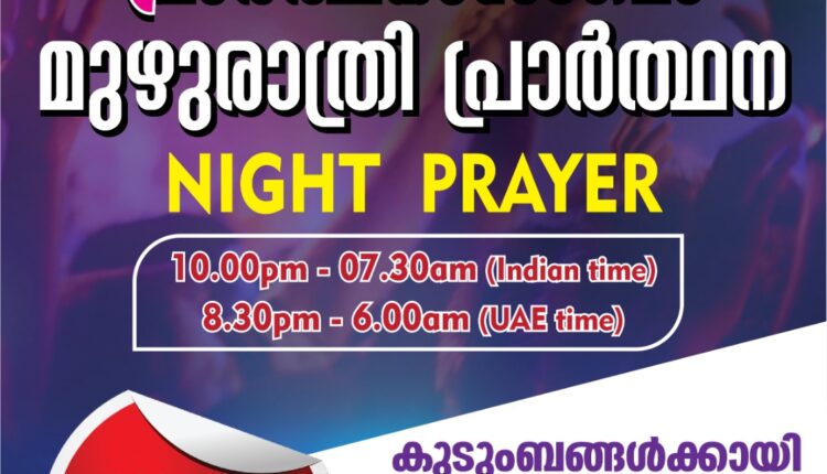 പ്രാർത്ഥനാസംഗമം ഒരുക്കുന്ന ‘മുഴുരാത്രി പ്രാർത്ഥന ‘ സെപ്റ്റംബർ 6 ന്