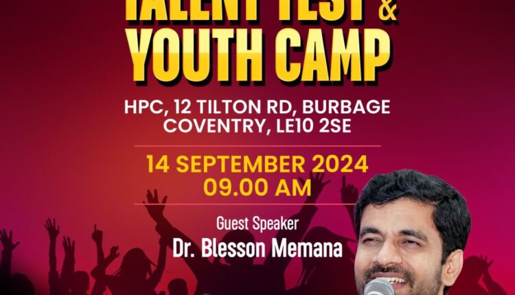 ഇംഗ്ലണ്ട്: ഐഎജി യുകെ & യൂറോപ്പിന്റെ ഏകദിന യുവജന ക്യാമ്പും ടാലെന്റ് ടെസ്റ്റും സെപ്റ്റംബർ 14 ശനിയാഴ്ച കവൻട്രിയിൽ വെച്ച് നടക്കും.