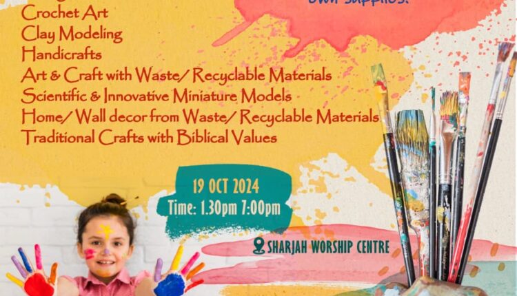 Sharjah, UAE: The COG UAE Media Department is excited to announce the Art and Craft Exhibition 2024, an in-person event taking place on October 19 from 2:00 PM to 7:00 PM at the Sharjah Worship Center’s Main Hall. This exhibition offers children and youth, aged 3 to 20, a chance to showcase their artistic talents and creativity.