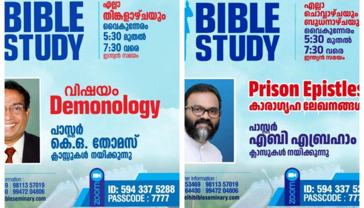 ഡൽഹി : ഡൽഹി ബൈബിൾ സ്കൂളിന്റെ (ഡി ബി സ്) അഭിമുഖ്യത്തിൽ ബൈബിൾ സ്റ്റഡി നടത്തപെടുന്നു.