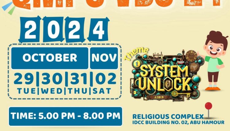 ഖത്തർ: ഖത്തറിലെ മലയാളി പെന്തകോസ്ത് ഐക്യകൂട്ടായ്മ്മയായ ഖത്തർ മലയാളീ പെന്തെക്കോസ്റ്റൽ കോൺഗ്രിഗേഷന്റെ ഈ വർഷത്തെ QMPC VBS’24 ഒക്ടോബർ മാസം 29, 30, 31 നവംബർ 1, എന്നീ തീയതികളിൽ അബുഹമൗറിലെ റിലീജിയസ് കോംപ്ലക്സ് ബിൽഡിംഗ്# 02 ലെ വിവിധ ഹാളുകളിൽ വെച്ചു നടത്തപ്പെടുന്നു. QMPC യുടെ ഇരുപതാമത്തെ വാർഷികം ആഘോഷിക്കുന്ന ഈ വർഷം “System Unlock” എന്നതാണ് തീം ആയി തിരഞ്ഞെടുത്തിരിക്കുന്നത്. അറുനൂറോളം കുഞ്ഞുങ്ങളും നൂറിൽ അധികം അധ്യാപകരും വോളന്റീർസും പങ്കെടുക്കുന്ന പ്രസ്തുത വി. ബി. സ് -ൽ ഈ വർഷം തിരുവല്ലയിൽ ആസ്ഥാനമായി പ്രവർത്തിക്കുന്ന തിമോത്തി ഇൻസ്റ്റിറ്റ്യൂട്ട് ക്ലാസ്സുകൾക്ക് നേതൃത്വം നൽകും.